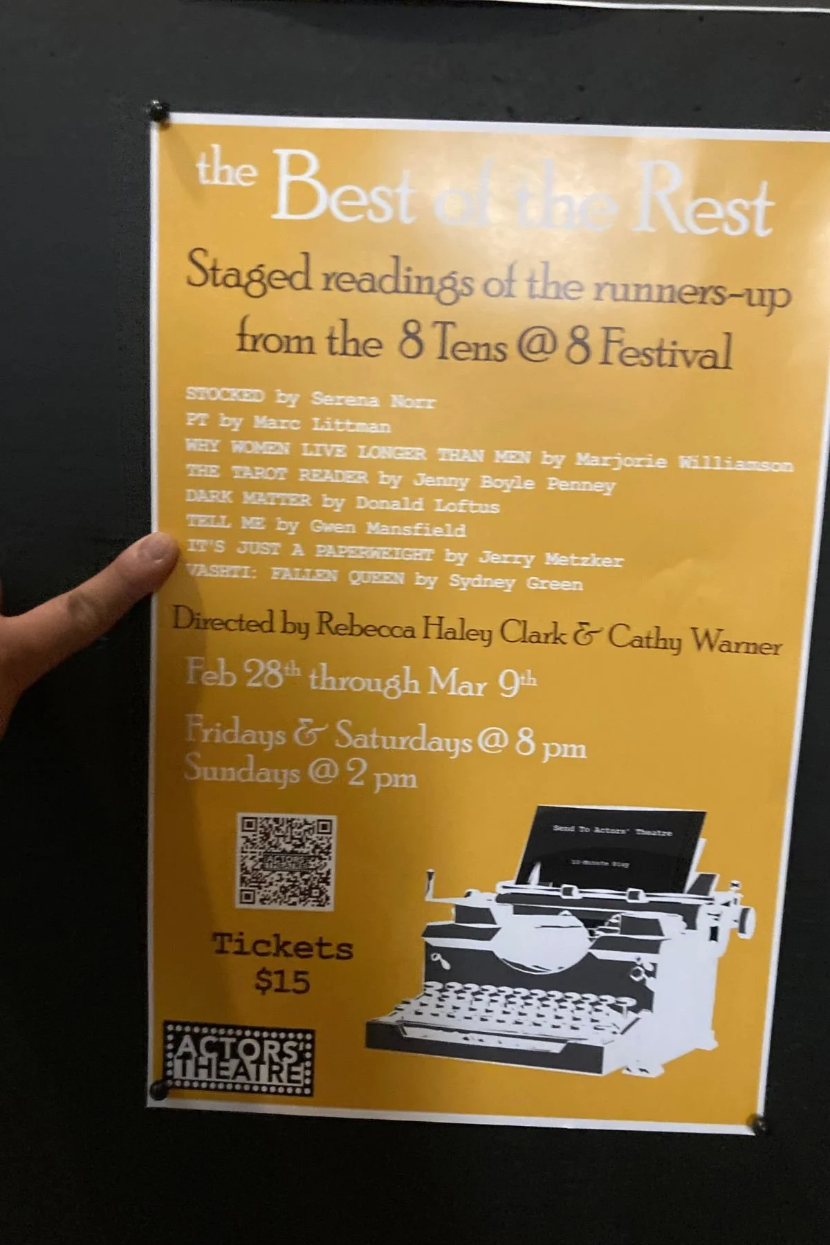 My 10-minute play, “It’s Just a Paperweight” was included in the Best of the Rest evening of staged readings at Actors’ Theatre of Santa Cruz in March 2025.